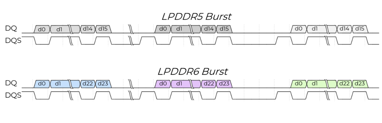 LPDDR5常用的是BL16,而LPDDR6躍升到了 BL24。這代表每一次傳輸能攜帶更多資訊。有趣的是,這24 bits裡不僅包含資料,還預留了空間給錯誤校正(ECC)與安全機制。這確保了在極高頻率下,資料傳輸依然能維持極低的錯誤率。