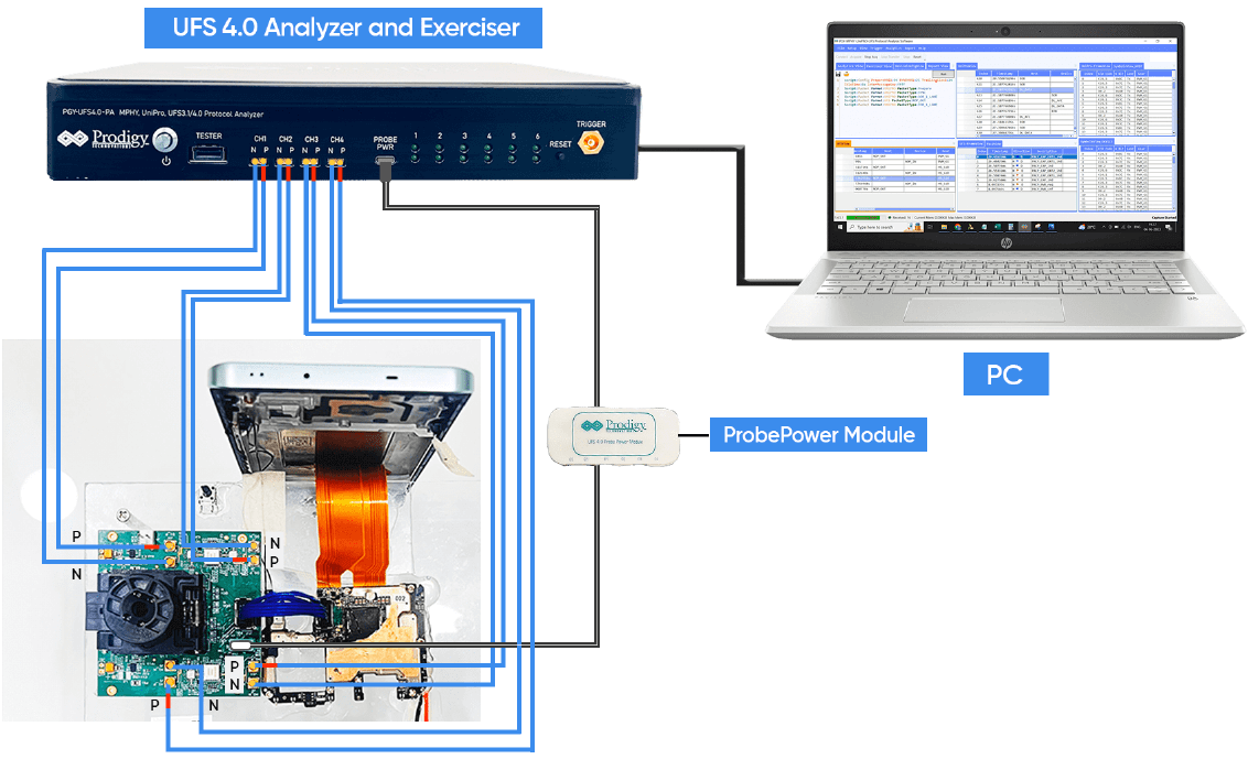 Prodigy UFS分析儀是一款能把UFS主機與裝置之間的M-PHY / UniPro / UFS所有的通訊協定全部捕獲並展開來的設備,平常UFS匯流排上到底在傳什麼指令、交換什麼封包、資料到底怎麼跑,其實都藏在黑盒子裡,透過分析儀,你可以從最底層的M-PHY電氣訊號、到UniPro協定、再到UFS的指令流程,全都能即時看到、即時解碼。當待測物在讀寫資料、做任務管理或進行link startup,它會同步把整條匯流排上的協定資料整理好、層層對齊地呈現出來,分析時不同視窗的資料也都會連動顯示,加快除錯效率。